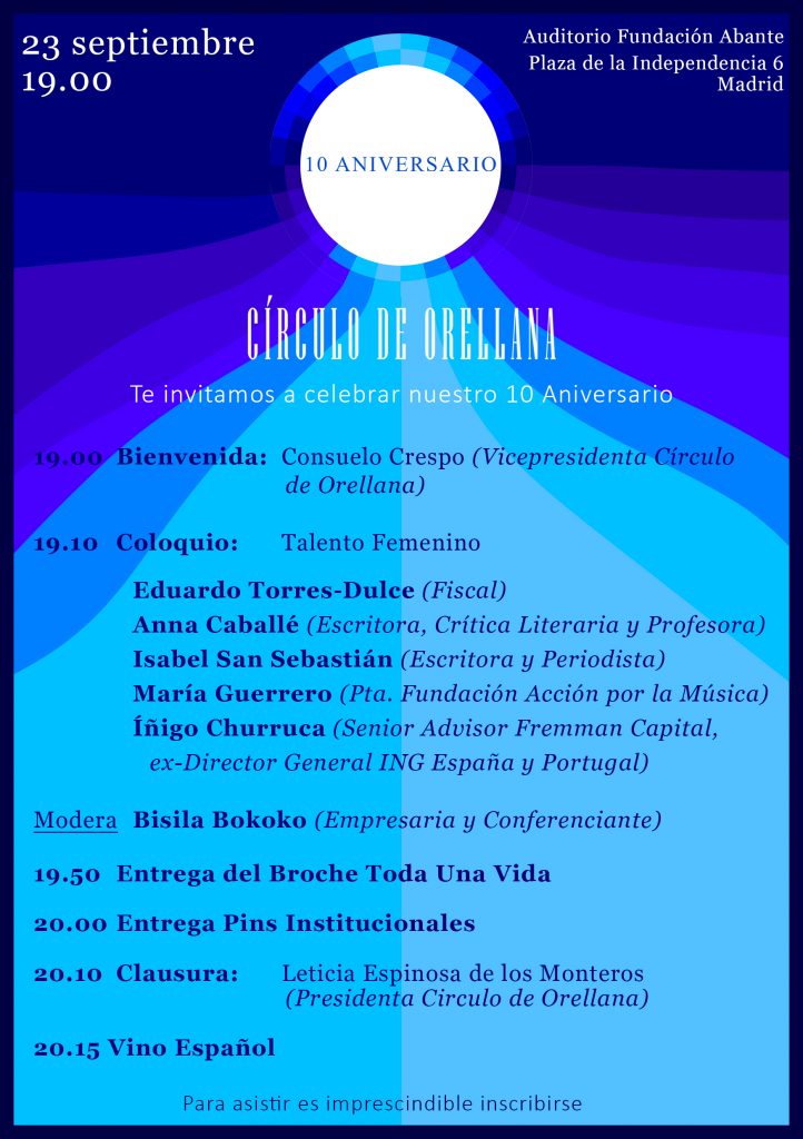 En el transcurso del Acto tuvimos un panel sobre Talento Femenino constituido por grandes ponentes: el fiscal, Eduardo Torres- Dulce, la catedrática y escritora Anna Caballé, la periodista y escritora, Isabel San Sebastián, la fundadora y presidenta de la Fundación Acción Social por la Música María Guerrero y en representacino de los Amigos Protectores del Circulo de Orellana,Íñigo Churruca, ex director general de ING España y Portugal. Todos ellos fueron moderados por la socia del Circulo de Orellana, Bisila Bokoko.